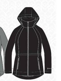 #5 SILVER COIL ZIPPER AT CENTER FRONT, LOWER POCKET; COZY HEATHER MELANGE PILE LINING; CURVED BOTTOM HEM; DRAWCORD ADJUSTABLE HOOD AND WAIST; MACHINE WASHABLE; WATER RESISTANT; WIND RESISTANT