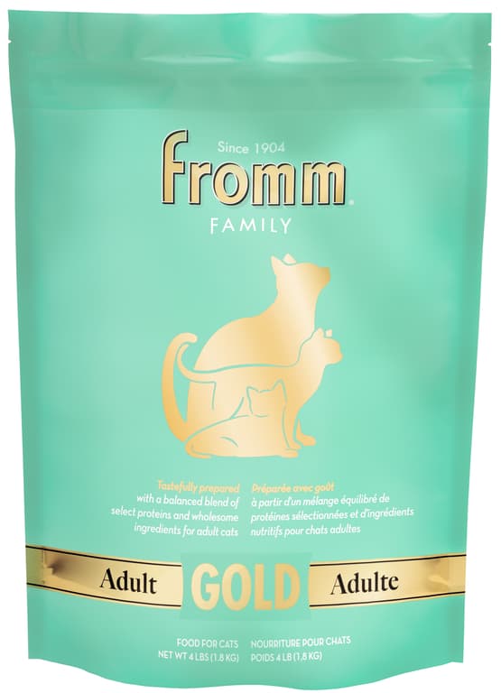 Fromm Cat Gold Adult is formulated for normally active adult cats. Prepared in controlled batches at Fromm's family facility, this recipe is tastefully prepared with select proteins and wholesome ingredients. Enhanced with probiotics to aid digestion and salmon oil for a healthy coat.Specifications