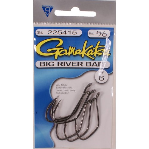 Gamakatsu's Big River Bait Hook features a unique shape and large gap. They are designed to optimize hook penetration and hold fish more securely once hooked.Specifications