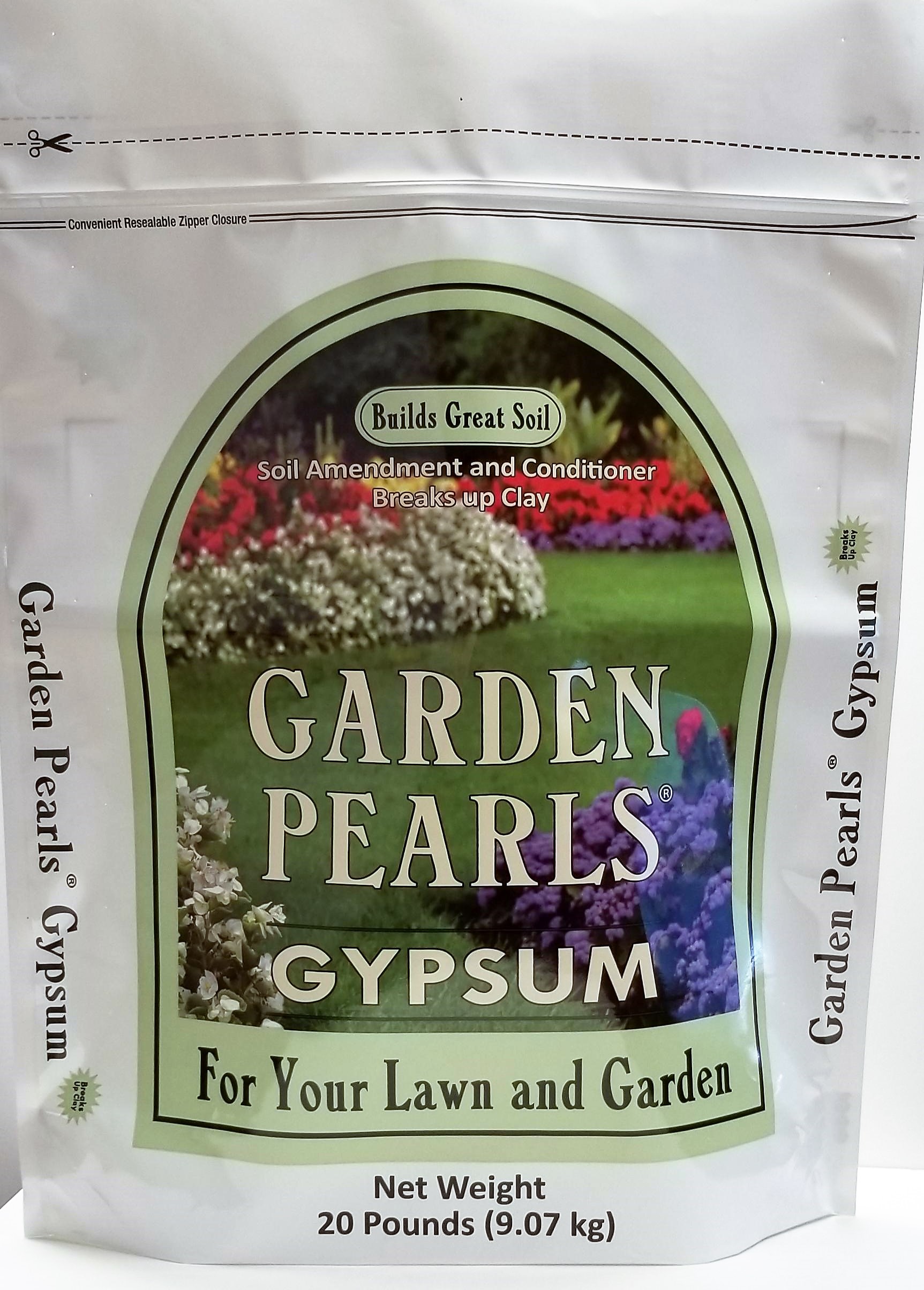 Adds calcium and sulfur; Can combine with fertilizer, compost or mulch; Flushes out salts reducing yellow spots in lawn from pet urine:Helps seed emergence by minimizing soil crusting; Garden Pearls Gypsum will condition and improve your soil fast; Improves drainage of heavy clay soils; Organic; Pelletized gypsum easy to apply by hand or with fertilizer spreader; Reduces soil compaction