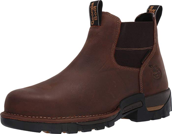 The Georgia Boot Eagle One waterproof Chelsea work boot packs heavy duty performance in a lightweight easy to slip on boot. The upper is constructed from full-grain SPR leather with twin gore panels and nylon pull tabs.Specifications