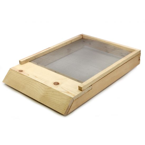 The screened bottom is an integral part of beekeeping pest management or "IPM". IPM stands for Integrated Pest Management and emphasizes the growth of a healthy crop (or in this case a healthy hive) with the least possible disruption to the agro-ecosystem. When it comes to beekeeping, the pests that are of most concern are Varroa mites. Varroa mites are known to be one of the causes of colony collapse disorder (CCD). Using our screened bottom board in combination with our Sticky Board can reduce the need for chemical control of Varroa through the natural drop of mites from the bees onto the sticky board. Once the Varroa falls from the bees and land on the sticky board, they can no longer travel back up and attach themselves to bees in the hive. There will always be some amount of Varroa within every hive, however, the goal in IPM is to reduce the population of Varroa down to a level where the hive can survive without additional medication. In addition, the screened bottom board not only provides for improved brood production but also for better airflow and ventilation which are highly needed during both the rainy and cooler weather (condensation tends to build up in a hive during rainy, cold weather) and during the warmer, honey flow season (helps to regulate the hive temperature). Made from strong and sturdy pine, our assembled screened bottom board comes with 14 mesh screen (14 squares per inch). It measures 24.5 long by 16.5 wide and will only work on 10-frame hives.Specifications