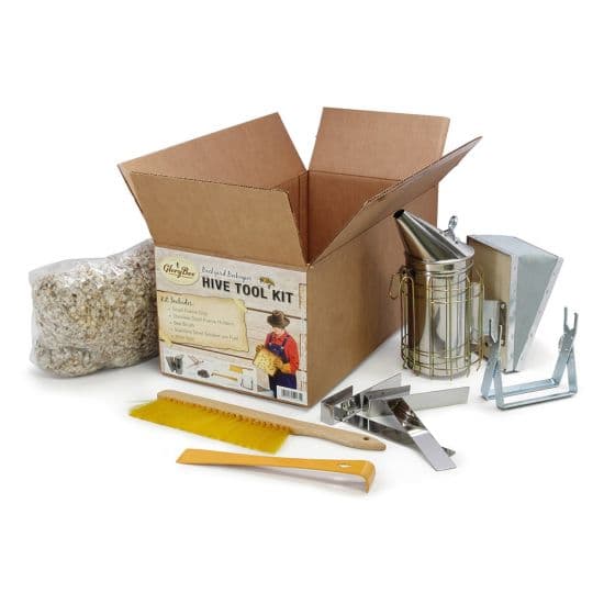 BEE BRUSH FOR SWEEPIG OFF BEES; LIGHTWEIGHT SMOKER WITH SHIELD WORKS GREAT FOR BEEKEEPERS WITH 10 HIVES OR LESS; SMALL FRAME GRIP FOR LOOSENING AND PULLING FRAMES FROM YOUR HIVE; SMOKER FUEL MADE FROM COTTON FIBER; STAINLESS STEEL FRAME HOLDERS TO MAKE ROOM WHILE INSPECTING; STANDARD HIVE TOOL
