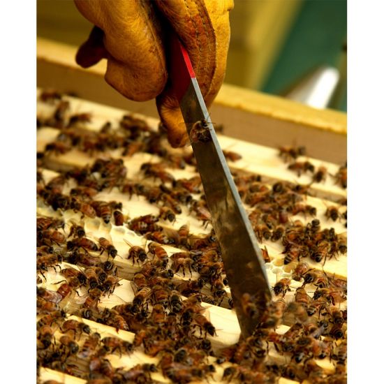 J Hook for lifting frames; scrapes for beeswax, propolis