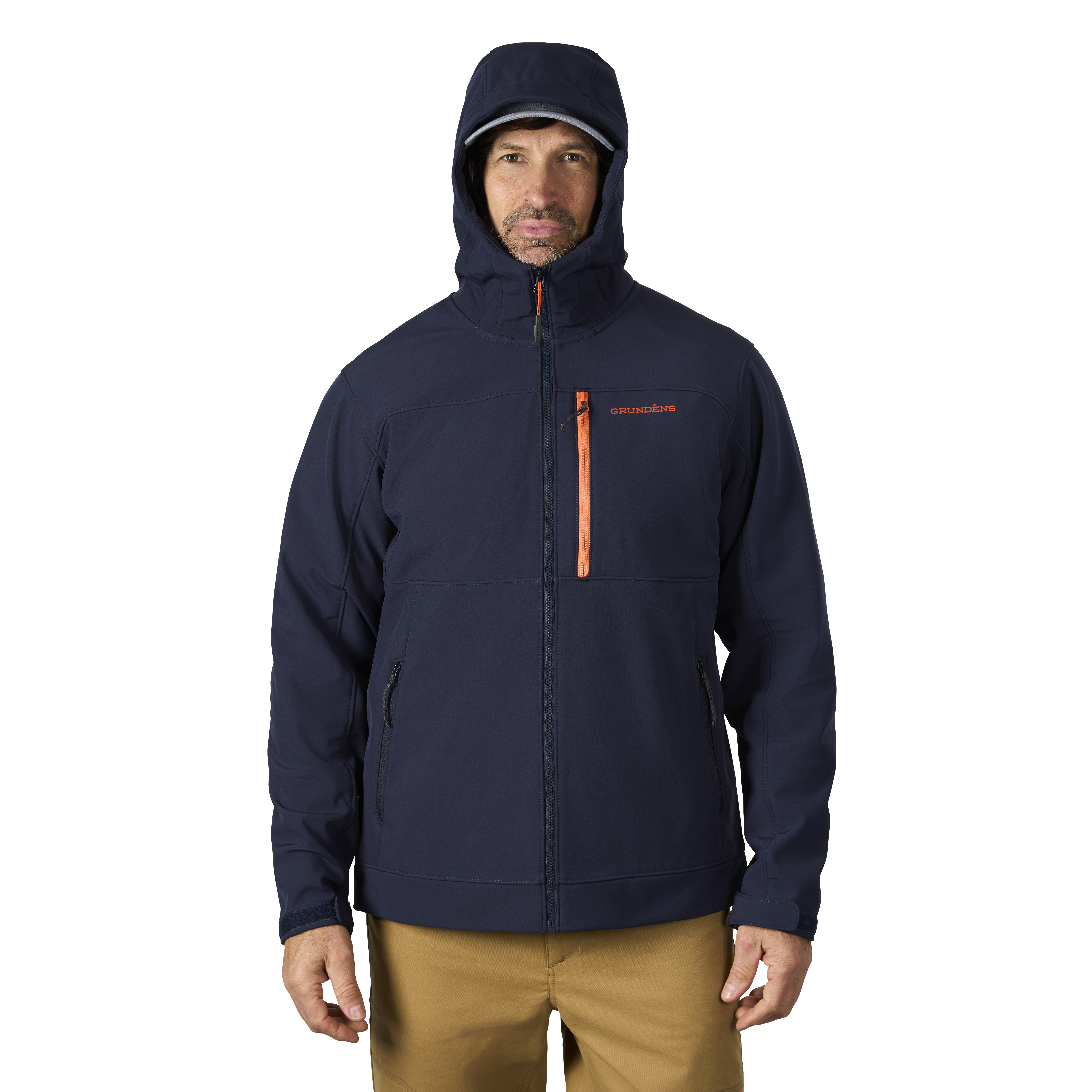 3L WOVEN SOFTSHELL WINDPROOF LAMINATION; ADJUSTABLE HOOD AND CUFFS; BRUSHED FLEECE INTERIOR KIT AND HANDWARMER POCKETS; SECURE ZIPPERED CHEST POCKET AND HAND POCKETS