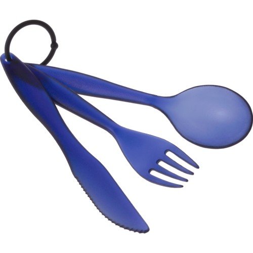 The GSI Outdoors TEKK 3 pc. Ring Cutlery Set. The fork, knife, and spoon snap together for convenient carrying, and come in bright hues for variety and easy identification. The nFORM Gourmet line represents a unique solution of ingenious tableware and cookware items designed to eliminate the guesswork of packing for the outdoors. A' la carte or in preconfigured sets, nFORM Gourmet is redefining outdoor function with everything that you really need to enjoy great food in the great outdoors. The GSI Outdoors TEKK 3 pc. Ring Cutlery Set Lends your backcountry table a touch of color and style with elegance.Specifications
