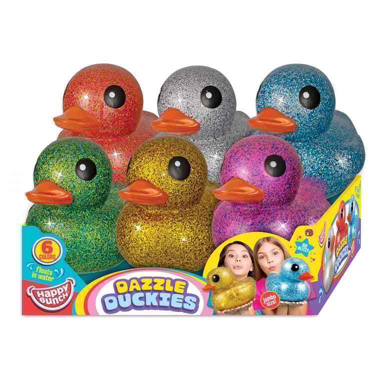 Jumbo size glitzy duckies that floats in water. Good for bath tubs or pools. Comes in 6 colors. Purchase in store for specific color selection.Specifications