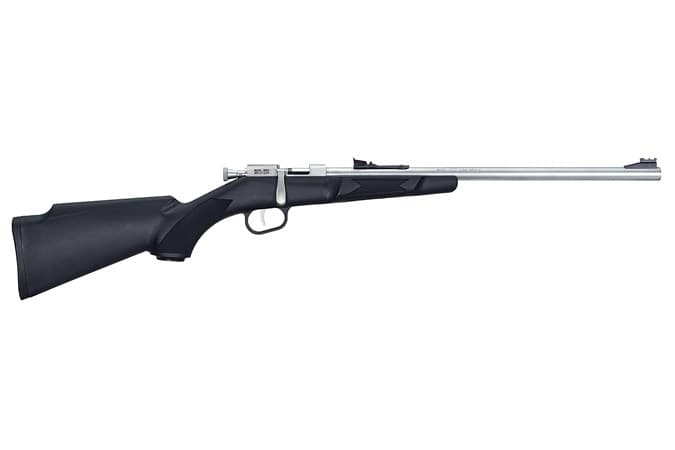 To maximize safety we outfitted the Mini Bolt with a manually operated safety switch that, when set, prevents the gun from firing even when cocked. The beavertail forearm includes wraparound checkering that makes it easy for young hands to grip. And we fitted the stainless steel barrel with high-visibility Williams Fire Sights using two bright green fiber-optic dots on the adjustable rear sight and one red dot for the front bead so young eyes can get on target easily even in low-light conditions.Specifications