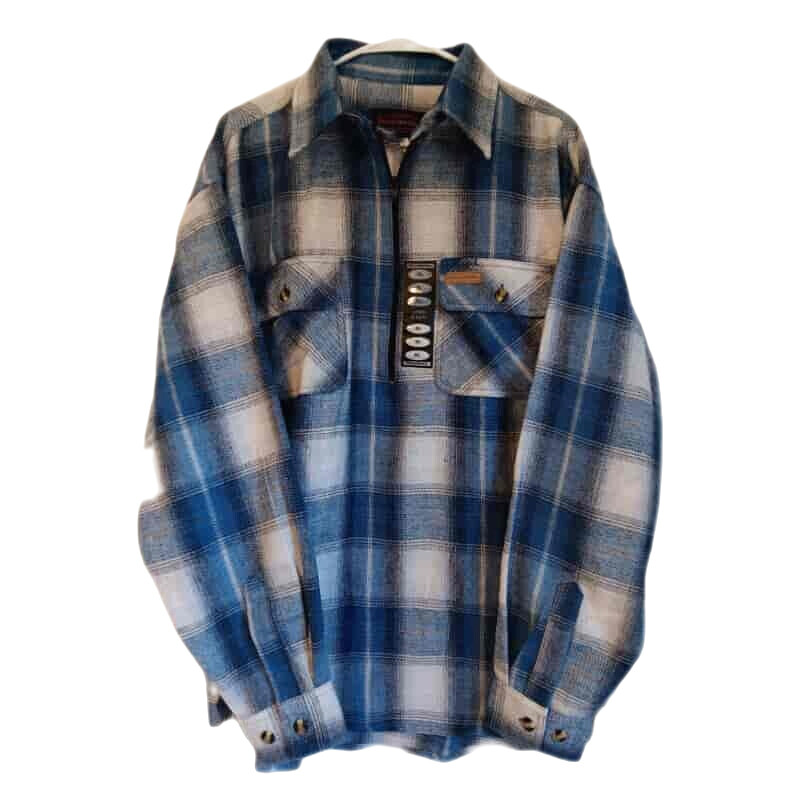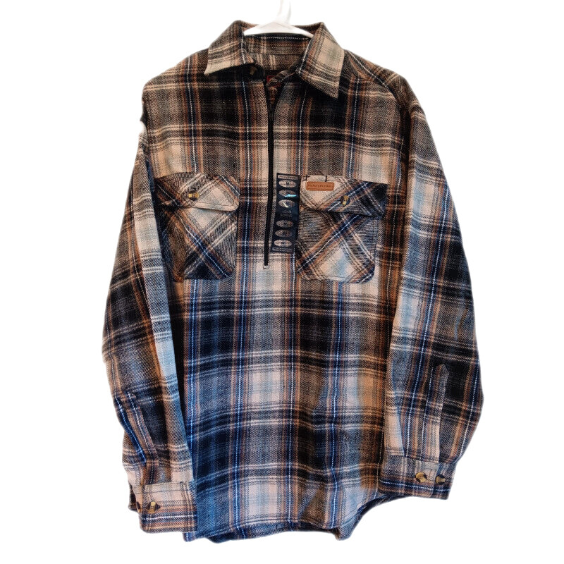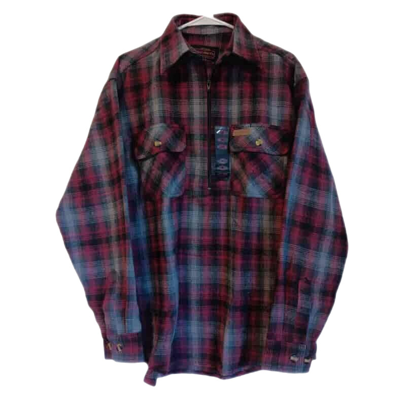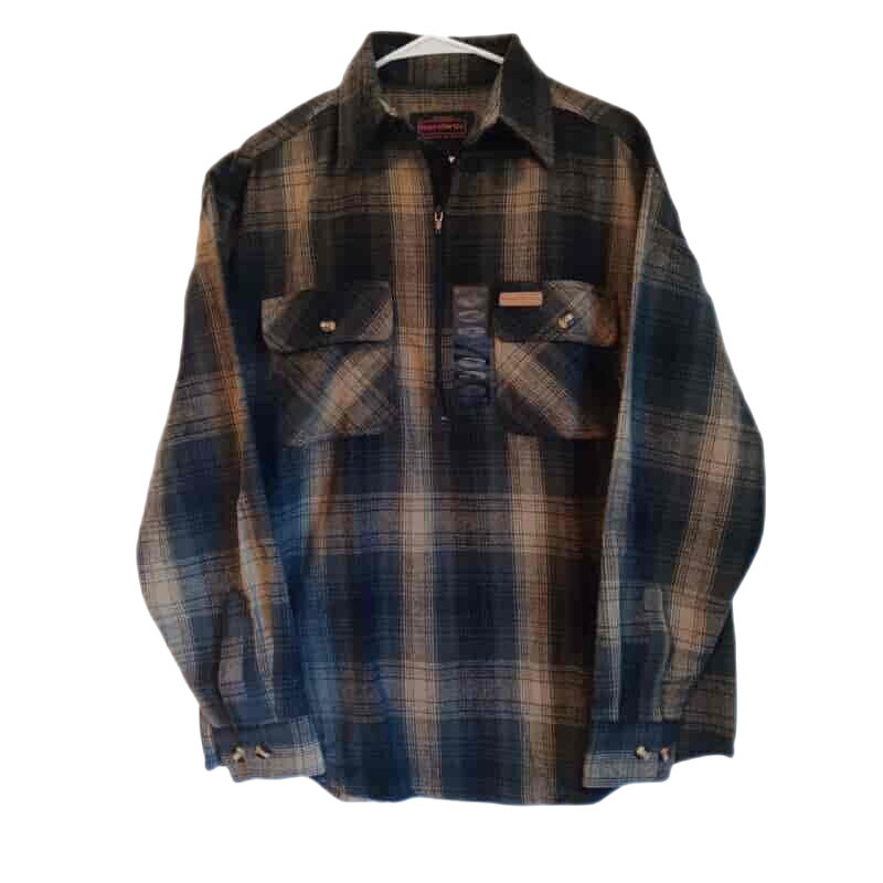 HALF ZIP; HICKORY SHIRT CO FLANNEL PLAID SHIRT