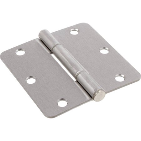 Hardware Essentials squeak-proof 1/4 round corner satin nickel door hinges 3-1/2 are a sturdy reliable way to mount your doors with ease. Though they remain mostly unseen a quality set of hinges can be the difference between a noisy sagging daily frustration and a silent pristine entryway. Hinges are full mortise with beveled holes for a flush mount.Specifications
