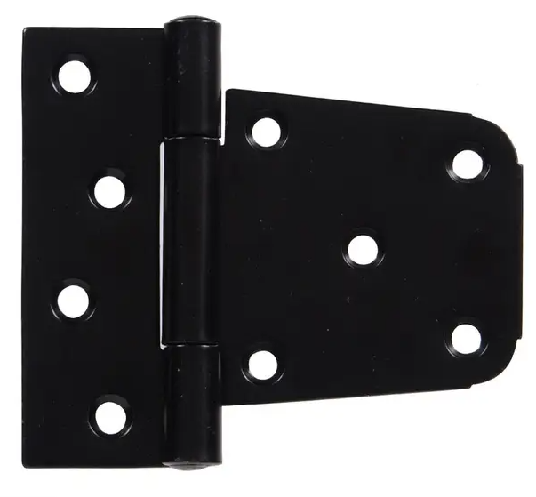 Doors and gates wear out hinges and posts over time. Weight size and constant use can contribute to hinge wear. When combined with a narrow mounting surface standard t-hinges concentrate stress resulting in failure. With Hardware Essentials Broad Heavy Duty T-Hinges the stress on a mounting surface is more evenly distributed. A wider strap provides better support and stability. Great for 4 x 4 posts. Available in several sizes and finishes.Specifications