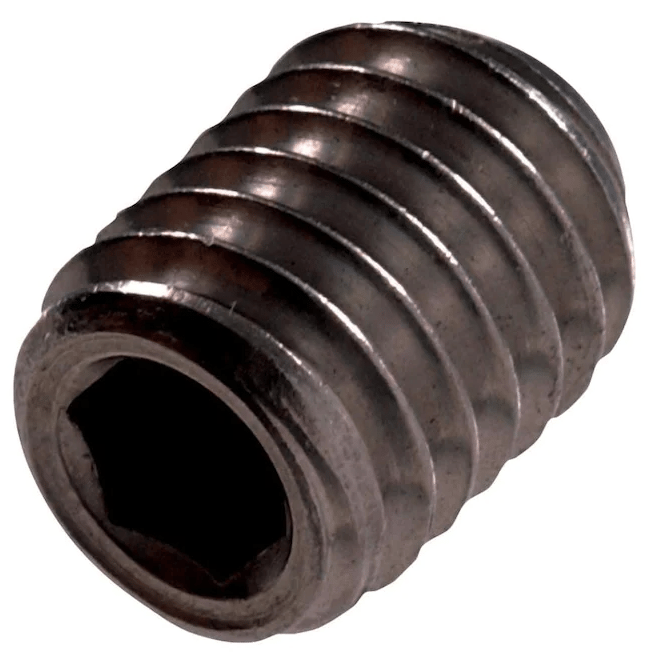 A socket set screw is also called a grub screw. It has no head and is typically tightened or loosened with a square or hex key.Specifications