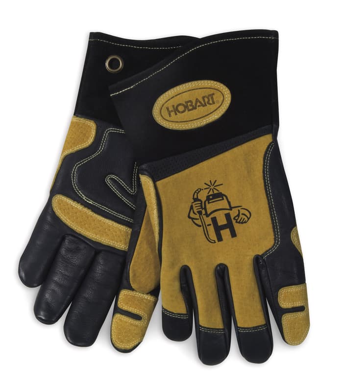 Premium cowhide split and grain leather welding gloves feature a form-fitted design.Specifications