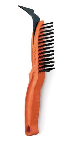 HANDLE OF THE WIRE BRUSH IS MADE FROM STURDY HEAT-RESISTANT NYLON; IDEAL STAINLESS STEEL WIRE BRUSH FOR REMOVING DEBRIS AND POLISHING WELDS; STEEL SCRAPER AT THE END OF THE HANDLE PROVIDES ADDED UTILITY
