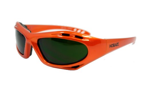 Hobart branded safety glasses have form-fitting frames with shade 5 lenses that are made from shatterproof polycarbonate and have a scratch resistant coating.Specifications