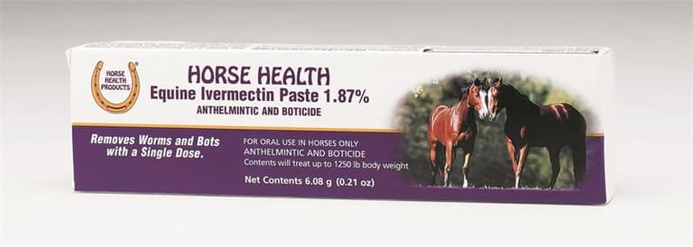 Horse Health Ivermectin Paste 1.87% is an apple-flavored dewormer that provides effective treatment and control of the following parasites in horses:large and small strongyles, pinworms, ascarids, hairworms, large-mouth stomach worms, bots, lungworms, intestinal threadworms and summer sores caused by Habronema and Draschia spp. cutaneous third-stage larvae.Specifications