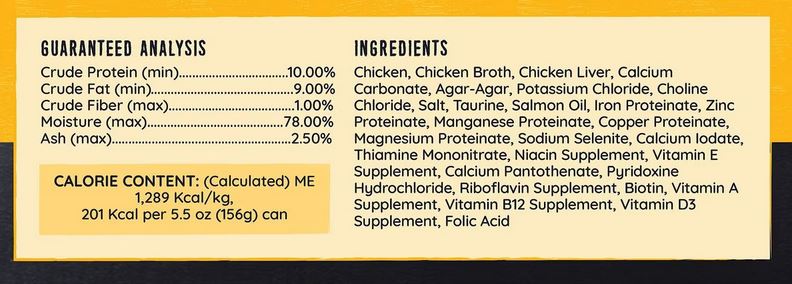 Feed your cat the diet he's craving with Hound & Gatos 98% Chicken & Liver Grain-Free Canned Cat Food. This uniquely simple pet food is made from wholesome homestyle chicken and chicken liver as the only protein source for true nutrition. Following the ancestrally appropriate Paleolithic diet, Hound & Gatos food focuses on wholesome meat fortified with vitamins and minerals, with no added carbohydrates or artificial preservatives. Each can is filled with the nutrition your carnivore companion needs to live a long and happy life.Specifications