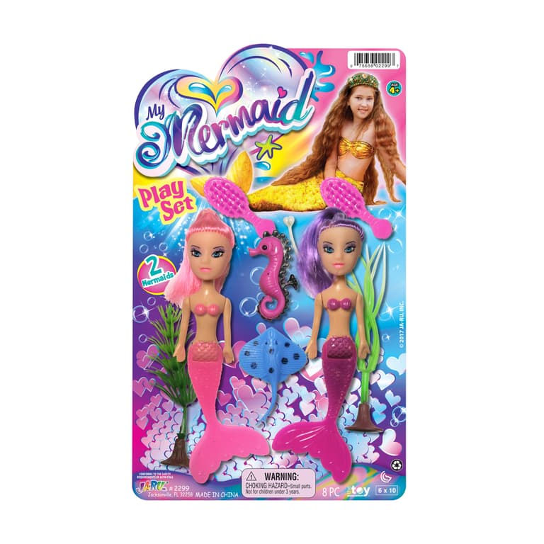 2 BRUSHES; 2 PLANTS; AND TWO SEA CREATURES.; MY MERMAID PLAY SET COMES WITH 2 MERMAIDS