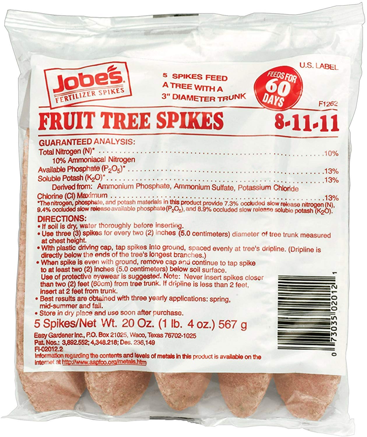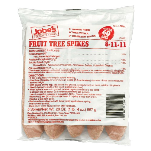 Don’t be the bearer of bad fruit this season Jobe’s Fruit & Citrus Tree Fertilizer Spikes 8-11-11 can help keep your trees in tip-top shape.Specifications