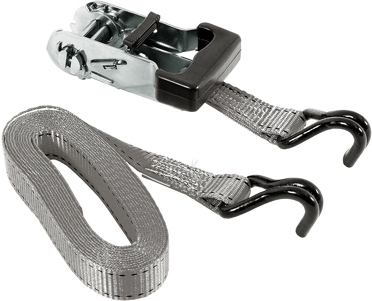 The Keeper 12 ft. High Tension Ratchet Tie-Down features an abrasion resistant 1 in. Hi-Test webbing to absorb shock during transportation. It is constructed with a steel ratchet buckle, open molded handle and vinyl-coated double J hooks to prevent scratching and marring. To engage attach the hook to an anchor point, pull the strap over the cargo and tug to desired tension. Then ratchet by raising and lowering the handle to lock the cargo into place.Specifications