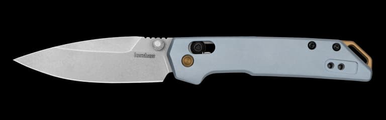 This Iridium goes mini for lightweight use and portability. A cool and casual everyday carry, it sports an ice blue handle with gold color accents. Activate with the thumb stud and experience buttery smooth deployment with KVT ball bearings. Ultra-secure DuraLock technology locks the blade in place. The D2 spear point blade is ideal for everyday cutting tasks. When your work is done, slide the lock back to safely close the Iridium and carry it with a reversible deep-carry pocket clip. If you’re looking for a light, easy EDC, go with the mini Iridium.Specifications