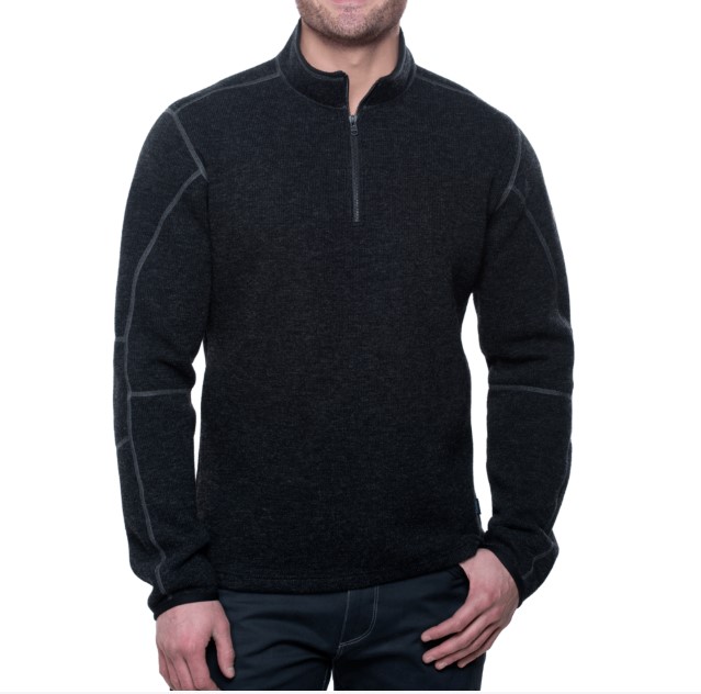 64% Polyester, 25% Wool, 11% Nylon 432 GSM; Collar/Sleeve Gusset: 100% Polyester 210 GSM; KUHL's exclusive articulated 5-panel sleeves for better range of motion; KUHL's signature thumb loops; Sweater knit bonded micro fleece; Underarm gusset for less bulk, better breathability