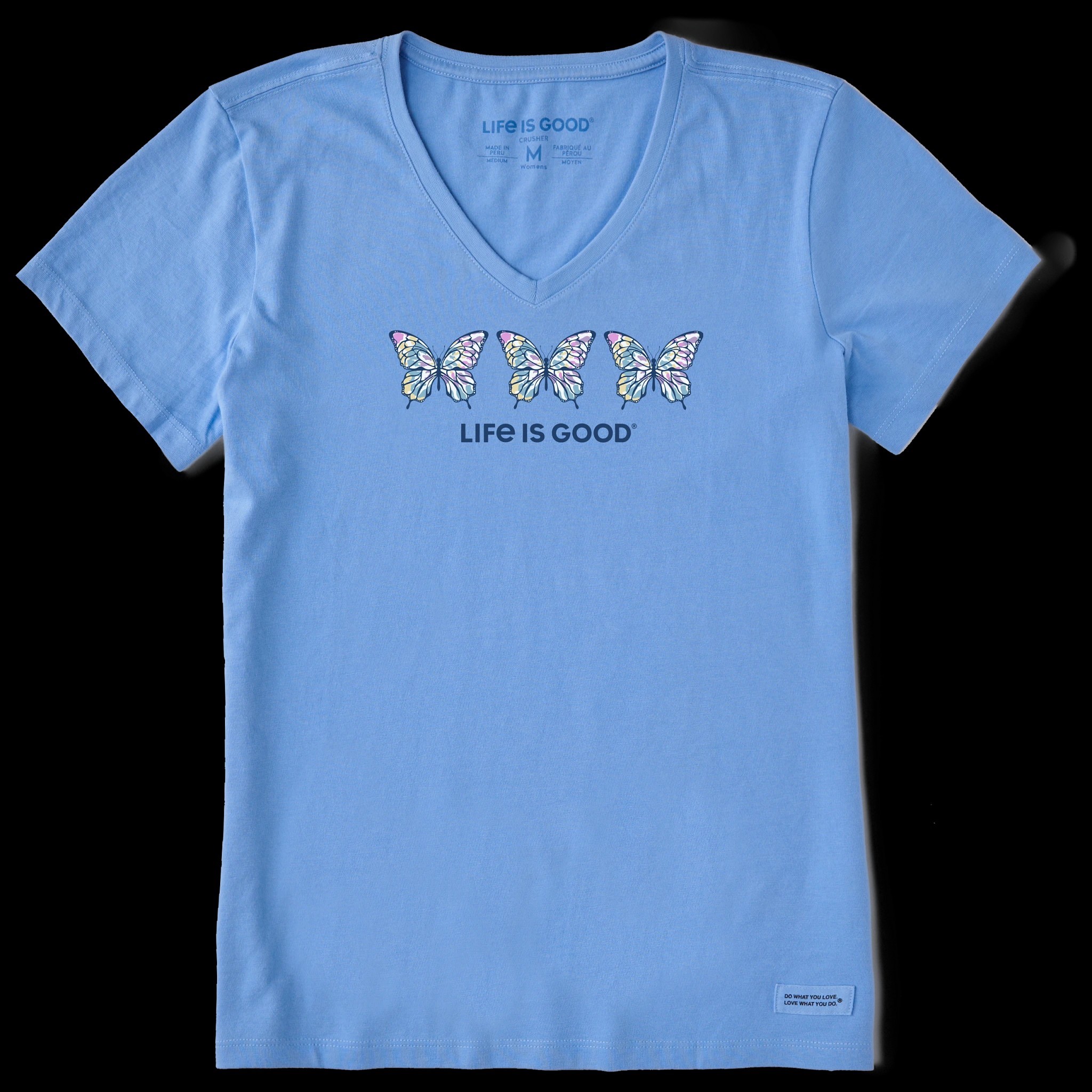 100% USA grown cotton jersey; Cotton/spandex rib at neck; Do what you love. Love what you do locker patch; Garment washed for softness; Lightweight jersey in fine yarn for added drape; Printed graphic; Self-fabric taping from shoulder to shoulder; V-NECK
