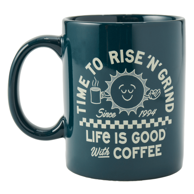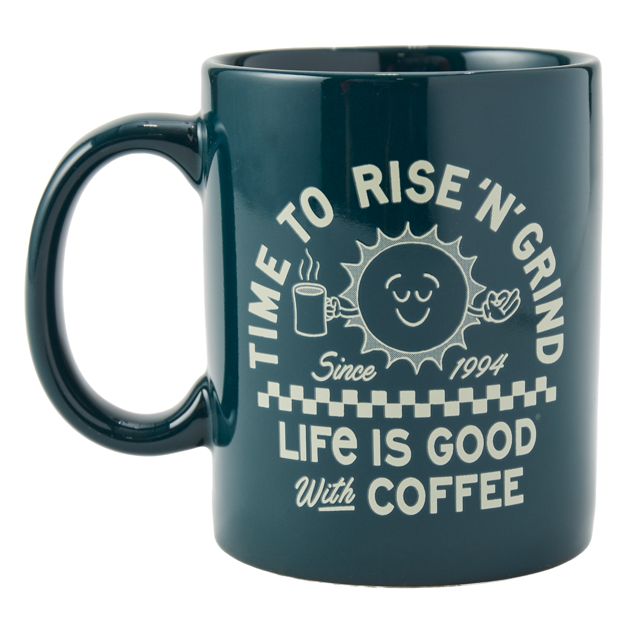 16 oz; Microwave and dishwasher safe; Sun; Time to rise n grind graphic