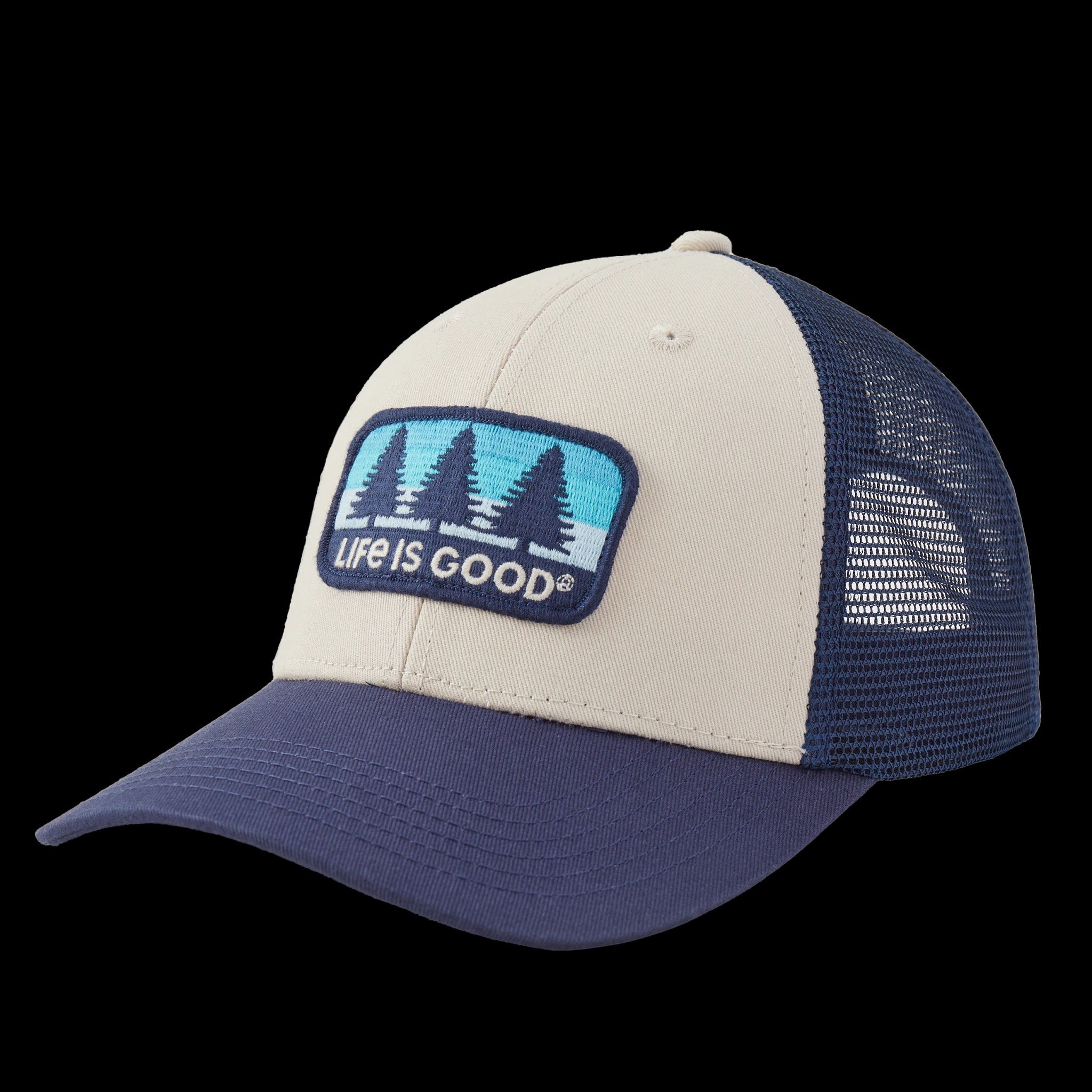 100% cotton twill construction; Six panel structured low-mid crown with six rows of stitching on the brim; Snapback with Life is Good label on the back; Structured front with firm mesh back
