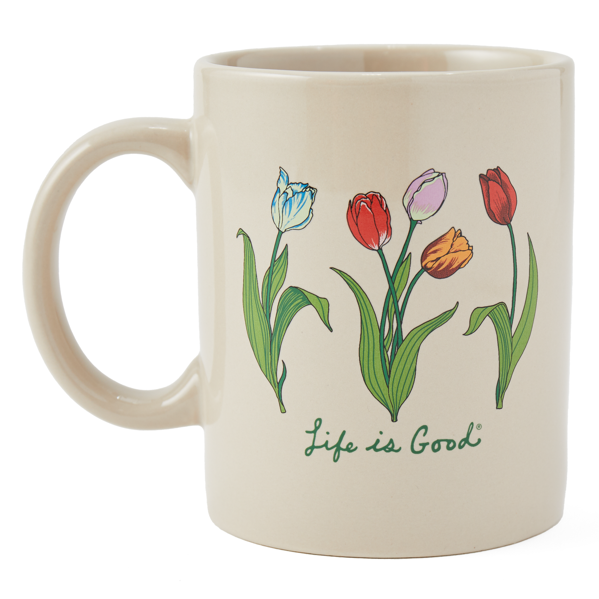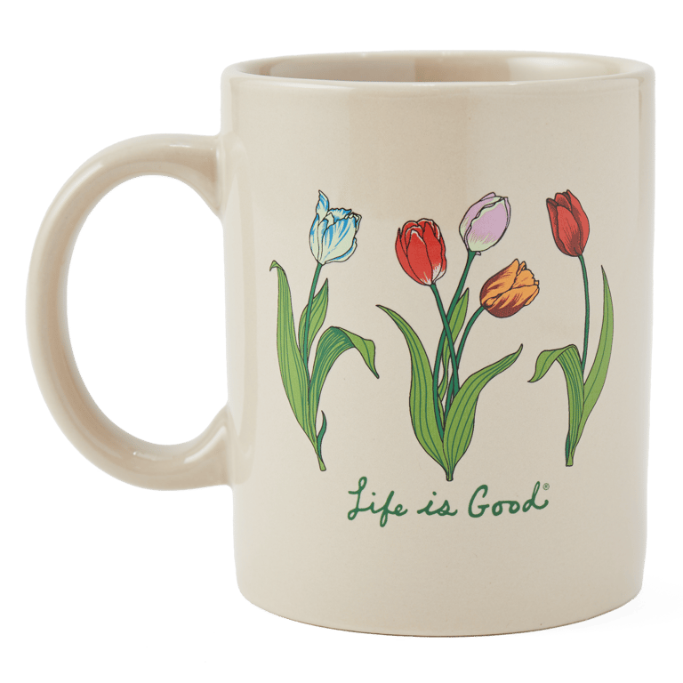 16 oz; Life is Good tulip graphic; Microwave and dishwasher safe
