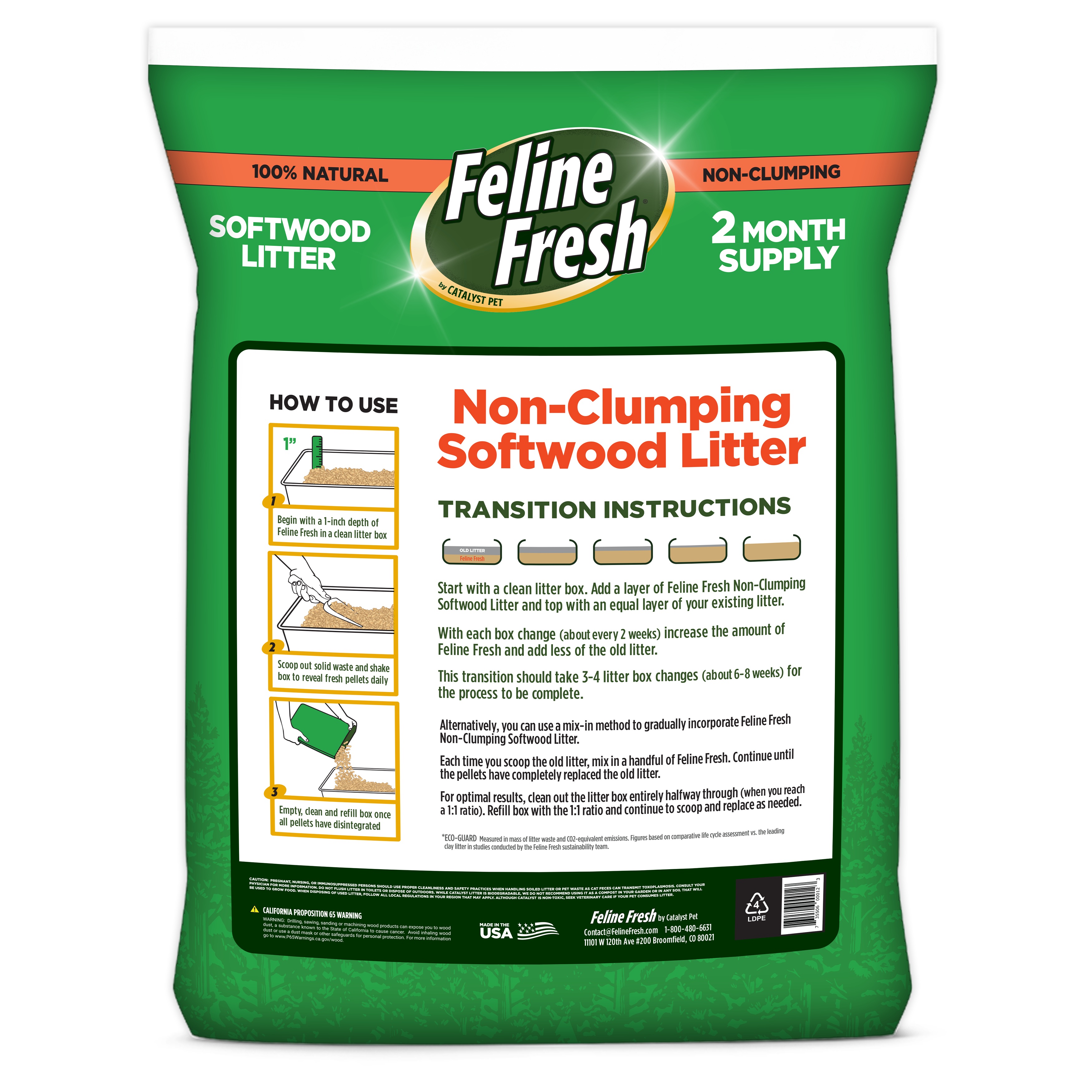 ABSORBS ODOR FAST; BIODEGRADABLE, COMPOSTABLE, AND SOURCED FROM WOOD RESIDUALS THAT WOULD OTHERWISE BE SENT TO LANDFILLS; LONGER-LASTING PERFORMANCE; LOW-DUST, NO TRACK FORMULA