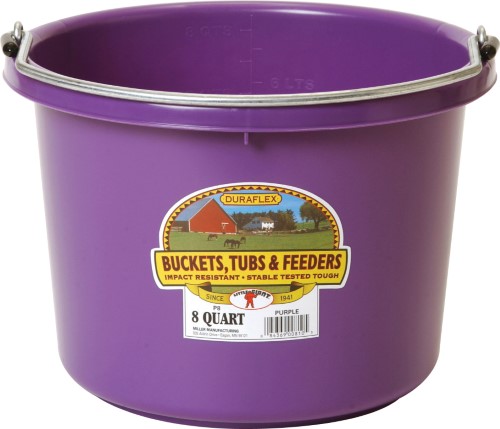 Practical and affordable Little Giant plastic buckets are favorites on farms ranches and worksites everywhere. Our buckets are made from polyethylene resin that is impact resistant protects against warpage and helps prevent stress cracks. This handy little round bucket features a heavy-duty wire bail. Holds 8 quarts 2 gallons.Specifications