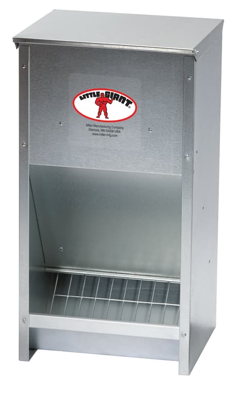 Little Giant Galvanized High-Capacity Poultry Feeder comes completely assembled ready to store and dispenses up to 25 pounds of mash, pellet or crumble feed.Specifications
