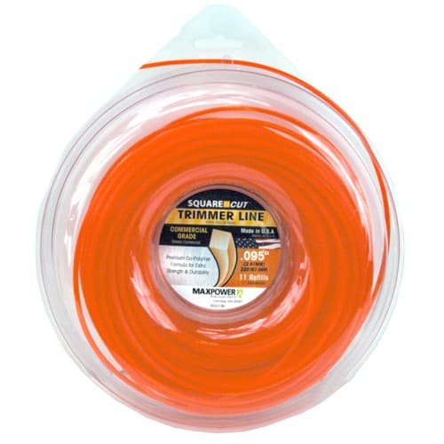 SquareOne Trimmer Line (332195) by Maxpower. Color: Orange. For the commercial users and those with larger residential areas, Maxpower's SquareCut trimmer line is perfect for those Heavy Duty trimming jobs. This line is manufactured in the USA and specially formulated from premium co-polymer blends to be stronger, last longer and cut better.Specifications