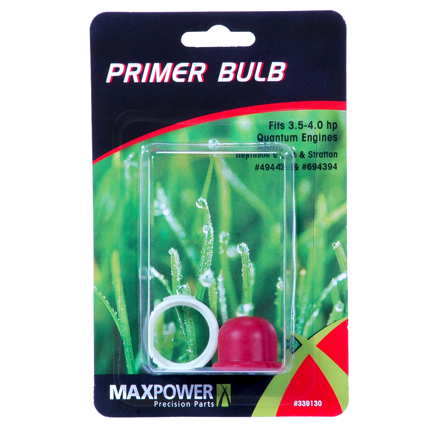 MaxPower's 339130 primer bulb with retainer replaces Briggs & Stratton 494408, 5084, 694394, and 5084K. This bulb fits Briggs & Stratton Quantum Series 3. 5, 3. 75 and 4. 0 HP models. All MaxPower products are manufactured with peak performance and reliability in mind.Specifications