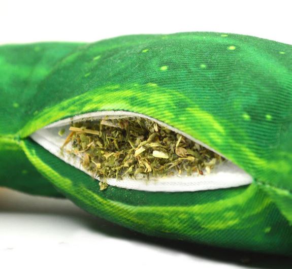 Cats are masters of chillin', but they also need some excitement in their lives. This spicy pickle toy is perfect for everything from kicking to cuddling. It can withstand the feistiest of felines and the refillable catnip pouch on the side offers hours of fun. Simply place a pinch of our dope 'nip in the pouch and get your kitty kickin'!Specifications