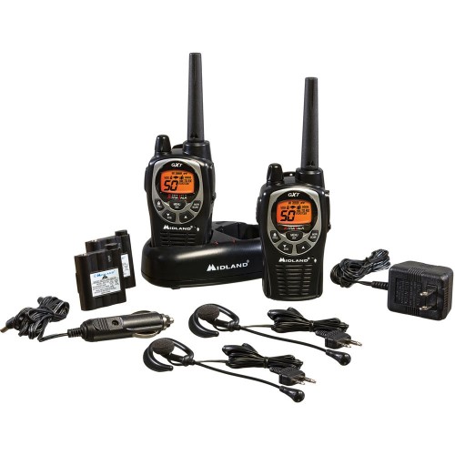 The GXT1000VP4 GMRS walkie talkie is a powerful and consistent choice for your radio communication needs. The GXT1000VP4 features X-TRA TALK Power - the maximum allowed by law with Xtreme Range Technology. Featuring Midland’s signature NOAA Weather Scan + Alert Technology, this radio will automatically scan through 10 available weather (WX) band channels and will lock onto the strongest weather channel to alert you of severe weather updates. This radio also boasts a JIS4 waterproof rating, hands-free communication, 22 channels plus 28 extra channels with pre-programmed privacy codes, 142 privacy codes, and silent operation. Along with two radios, this kit includes two rechargeable battery packs, AC/DC adapters, and pair of boom mic headsets. Whether you are camping, hiking, or overlanding, make sure you are keeping in touch with friends and family with the GXT1000VP4 two way radio.Specifications