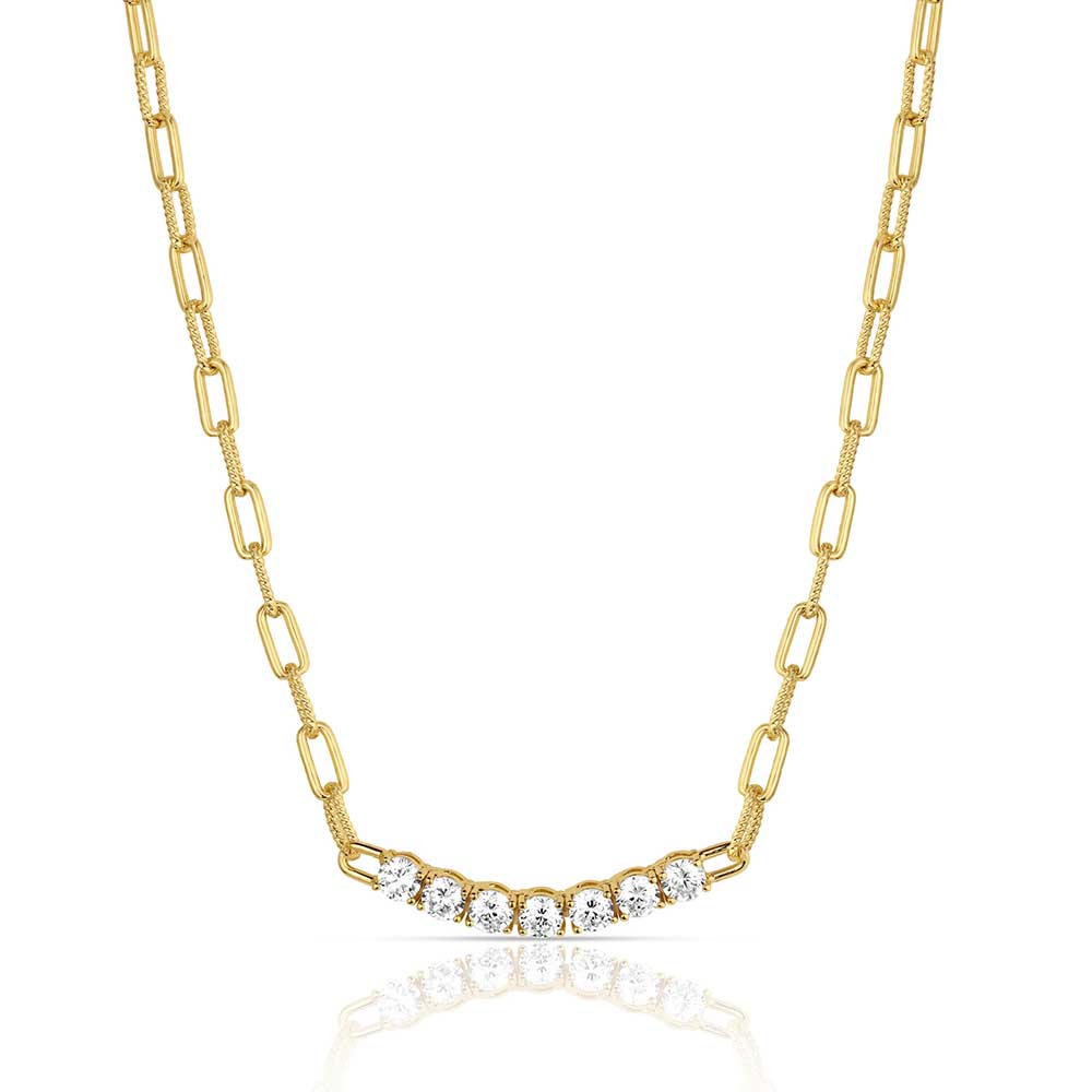 This bar necklace features a 16 inch gold tone chain and strikes the perfect balance between sleek and sophisticated. Anchored by a brilliant crystals, the minimalist design brings effortless polish to any outfit, whether styled solo or layered.Specifications