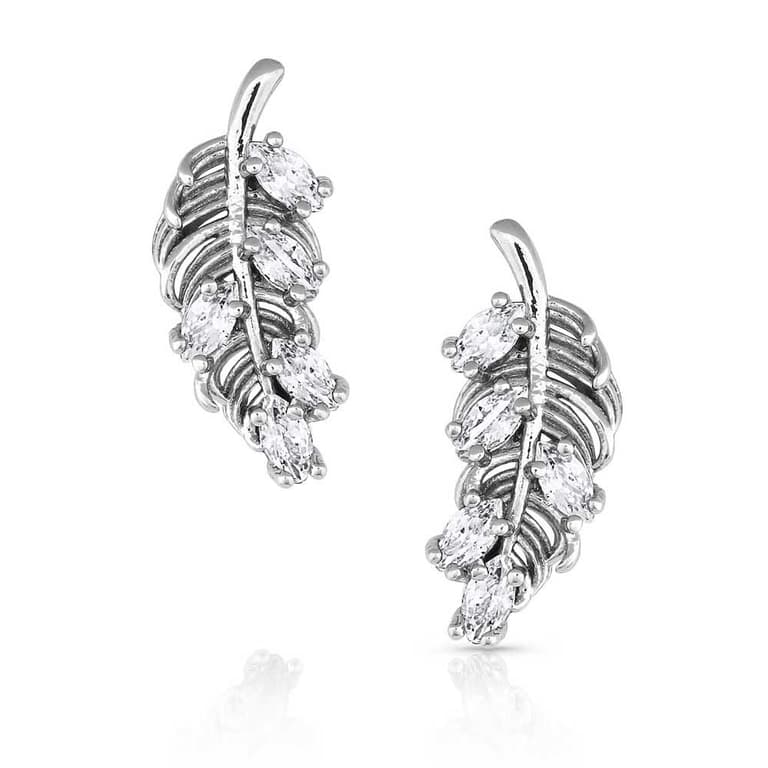 These earrings stand the test of time and exude elegance. A simple silver feather makes up the post earrings with five complementary clear cubic zirconia crystals to add subtle sparkle.Specifications