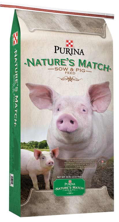 Nature’s MatchSow and Pig feed is a versatile, all-natural feed with 16% protein. It can be fed as a complete diet to pigs in multiple life stages. It is designed to meet the nutritional needs of grower-finisher pigs from 25 pounds to market weight, as well as your breeding herd, including developing gilts, lactating and gestating sows and boars. 20 bags (half pallet).Specifications