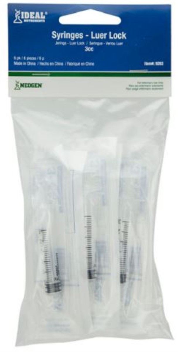 These Neogen Ideal Disposable 6 cc Luer Slip Syringes come in a 6 pack for convenience.Specifications