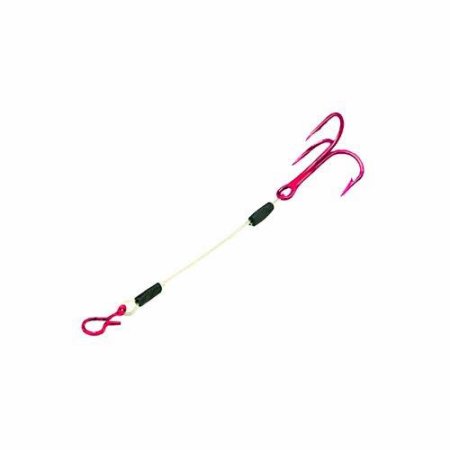 2 INCH SIZE; BEST FOR JIGGING ON CLEAN BOTTOMS; HOOK ONE TREBLE TINE INTO THE TOP OF THE BAIT; IF YOU STILL MISS FISH LET THE STINGER SWING FREELY; NOT DESIGNED FOR DRAGGING IN MOSS WEEDS OR OTHER SNAGGY BOTTOM AREAS; RUBBER-COATED LOOP-END EASILY SLIPS OVER ANY HOOK