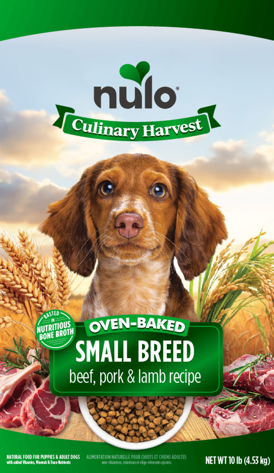 With 80% animal-based protein, tailored small-bite kibble, and a savory bone broth finish, Nulo Culinary Harvest is oven-baked to deliver big nutrition for small dogs. Our Small Breed Beef, Pork & Lamb recipe starts with real deboned beef, then layers in ancient grains, prebiotic fiber, and nourishing omegas to support lean muscles, gentle digestion, and all-day energytailored to meet the metabolic needs for small dogs. No fillers. No shortcuts. Just nutrition baked from the heart.Specifications