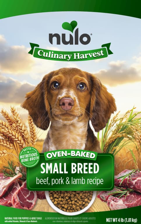 With 80% animal-based protein, tailored small-bite kibble, and a savory bone broth finish, Nulo Culinary Harvest is oven-baked to deliver big nutrition for small dogs. Our Small Breed Beef, Pork & Lamb recipe starts with real deboned beef, then layers in ancient grains, prebiotic fiber, and nourishing omegas to support lean muscles, gentle digestion, and all-day energytailored to meet the metabolic needs for small dogs. No fillers. No shortcuts. Just nutrition baked from the heart.Specifications