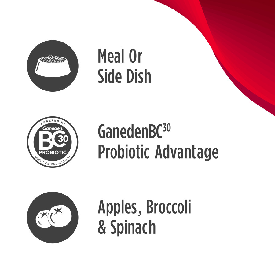 SHELF-STABLE RAW NUTRITION Convenient alternative to frozen raw that's ready-to-serve at home or on the go. PROBIOTIC ADVANTAGE GanedenBC30 probiotic supports your dog's digestive & immune health.