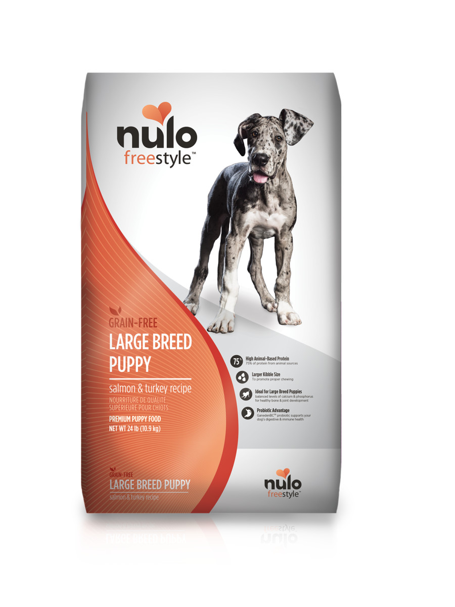 Our Large Breed Puppy recipe is tailor-made to promote the healthy growth of bones and joints through the optimal balance of calcium and phosphorus. With over 75% of proteins coming from real Salmon & Turkey, our grain-free recipe ensures that your puppy is getting the high quality amino acids they need as well as advanced probiotics and healthy antioxidants to support their developing digestive and immune system.Compare any Nulo FreeStyle recipe against the brand you're currently feeding your athlete.Specifications