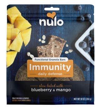 Go on Defense with Nulo’s functional granola bars! Every bite includes the greattaste of wholesome oats, peanut butter and scrumptious mangos. Cranberries, Coconut Oil,Prebiotics, Probiotics, Vitamin C and Vitamin E all support your dog's overall health for a powersnack that’s healthy and delicious.Specifications