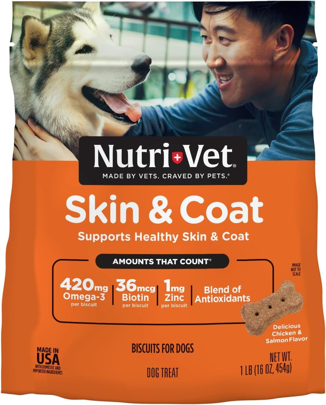 Treat your pup to improved skin and coat health with these satisfying biscuits which are packed full of delicious flavor and premium nutrients such as Omega-3 Fatty Acids, Biotin, and Zinc.With the power of ingredients like oats, sweet potato, flax, and chia, combined with the omega-3 fatty acids from salmon oil and antioxidants, our biscuits are here to help keep your furry friend's coat shiny and healthy.Specifications
