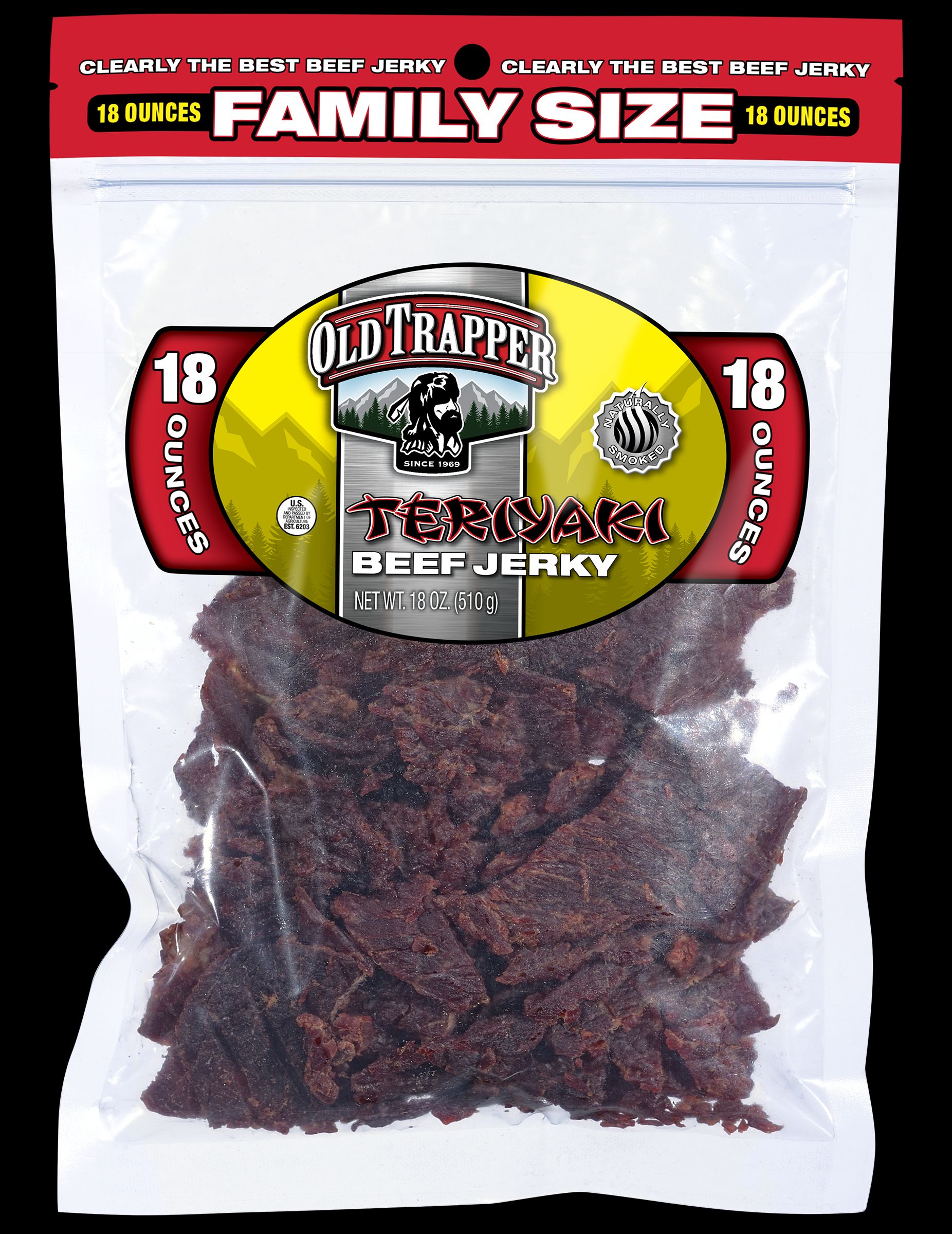 To create the unique salty-sweet flavor in our Teriyaki beef jerky, we marinate lean beef strips in soy sauce and apple cider vinegar, season the cuts with our own mix of spices, then smoke them with real wood until they’re tender, juicy, and delicious. You deserve the best, eat Old Trapper.Specifications