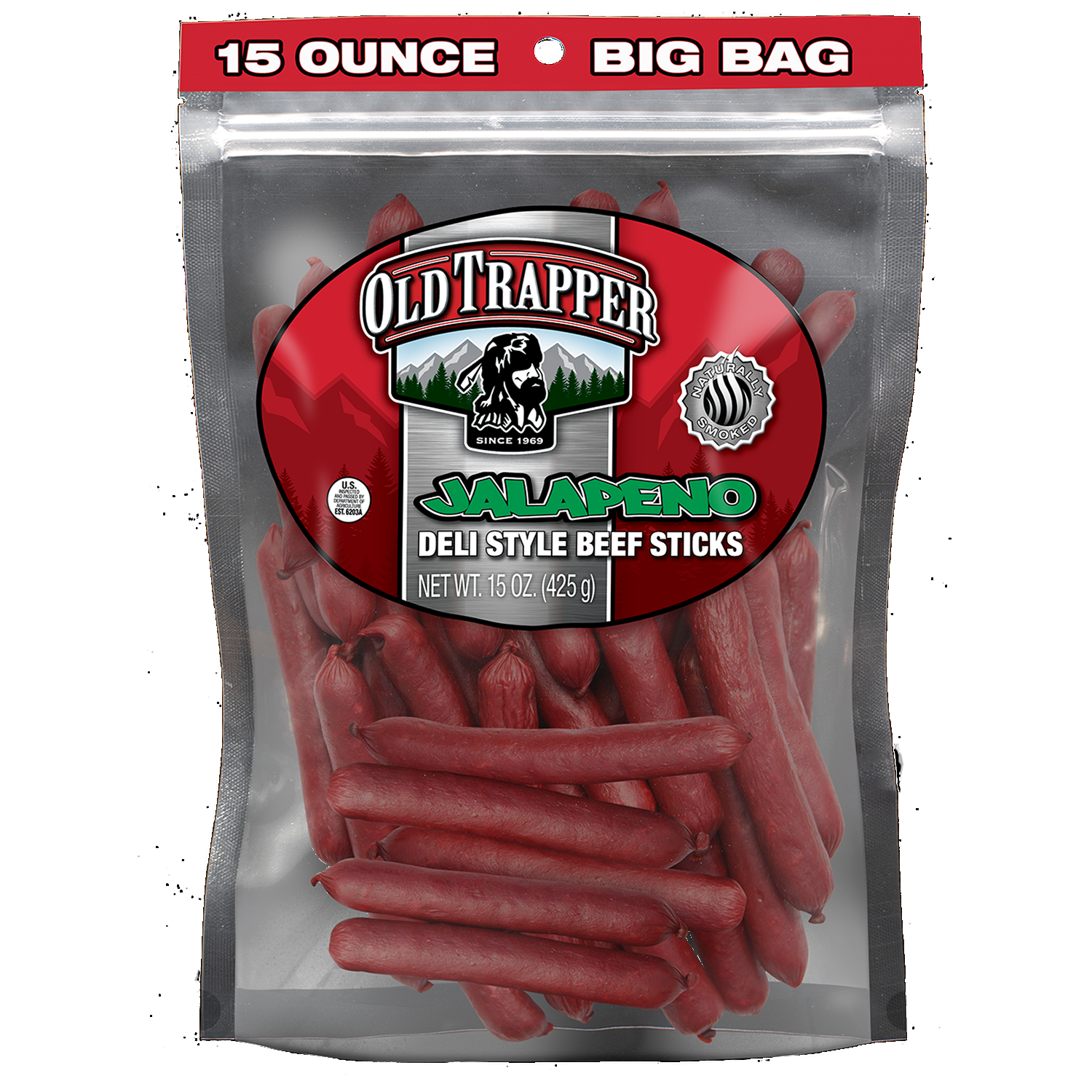 Cooked through wood-free smoking; Jalapeno flavored, old-fashioned style deli sticks; Old Trapper uses only the best ingredients to season and smoke our keto-friendly Deli Style beef; Our deli style rods are 100% all beef using only the finest and freshest seasonings for that classic taste everyone loves.